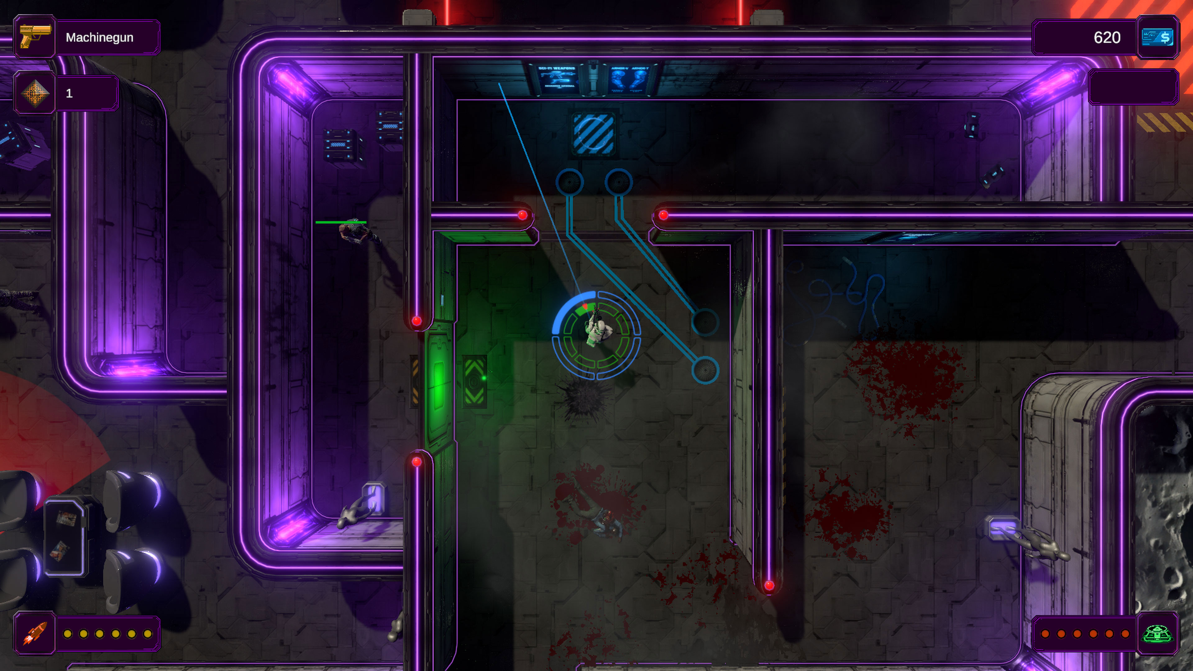 - Hack computer terminals to collect certain items.