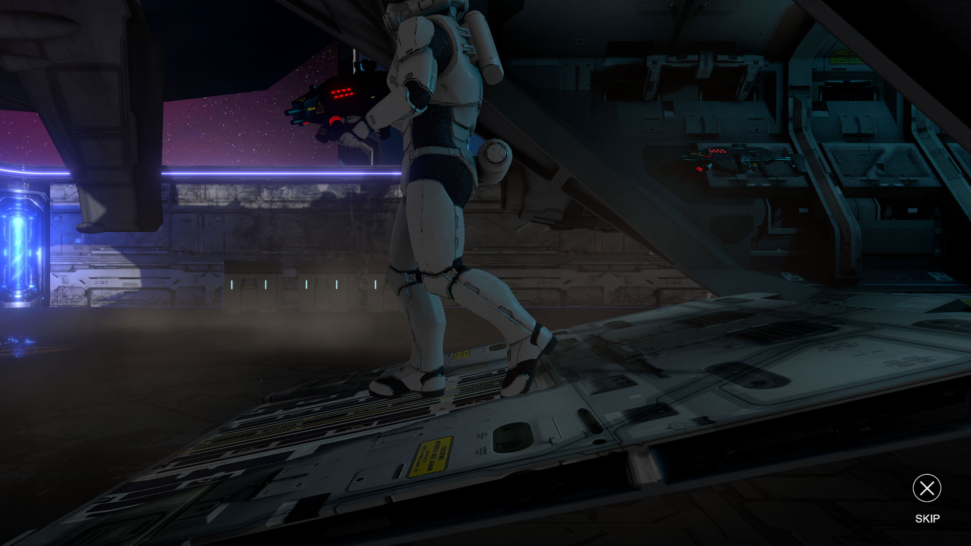 An Elite Trooper, a cyborg unit designed for battle by the Teldar Corporation's Assault Division has been deployed to wipe out the bandits before the station is completely looted and destroyed.